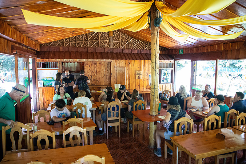 La alimentación recuerda a la Costa Rica de antaño, con exquisitos platos de picadillos de papaya, papa, chayote, maíz y arracache, acompañados de tortillas palmeadas, además de las deliciosas parrilladas, platos vegetarianos y demás que hacen muy difícil de olvidar las manos expertas que preparan tan delicioso manjar.